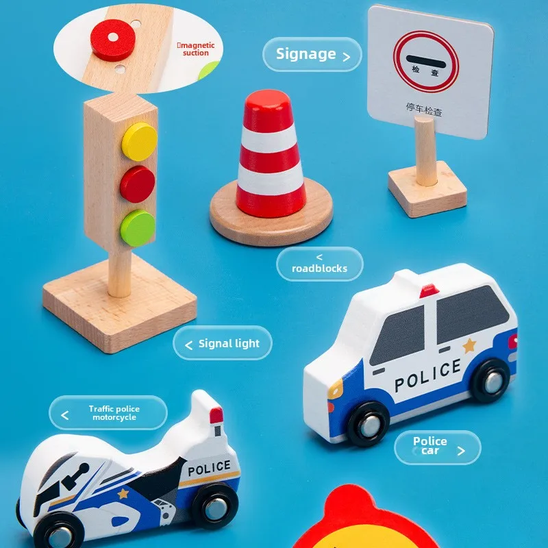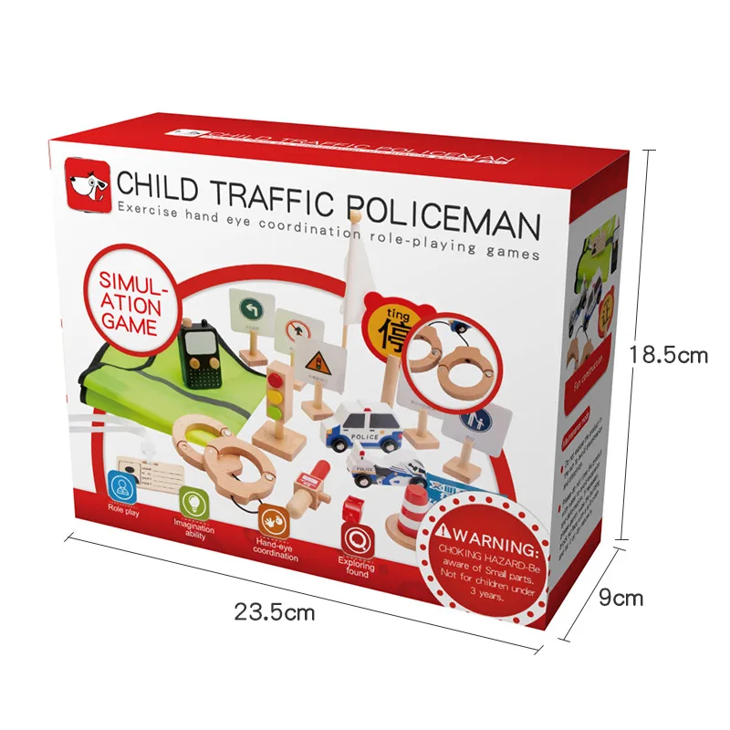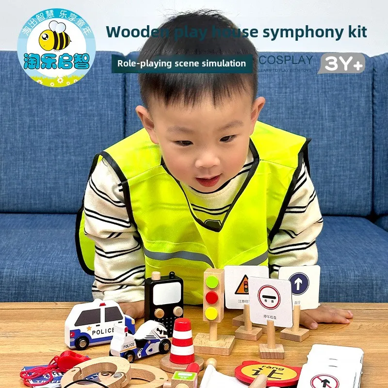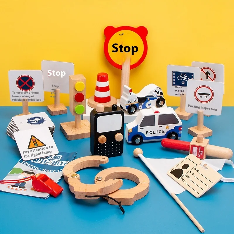 Unisex Kindergarten Play House Toy Set Little Traffic Police Officer Role Play Wooden Artificial Kids' Traffic Police Set Play